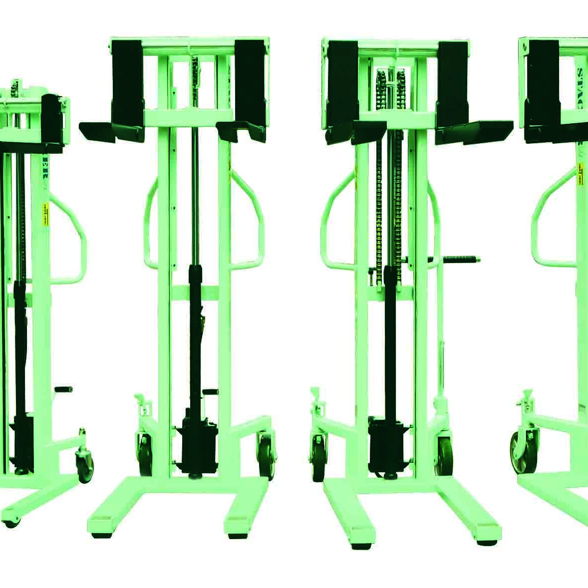 Manual stackers for vertical material handling.